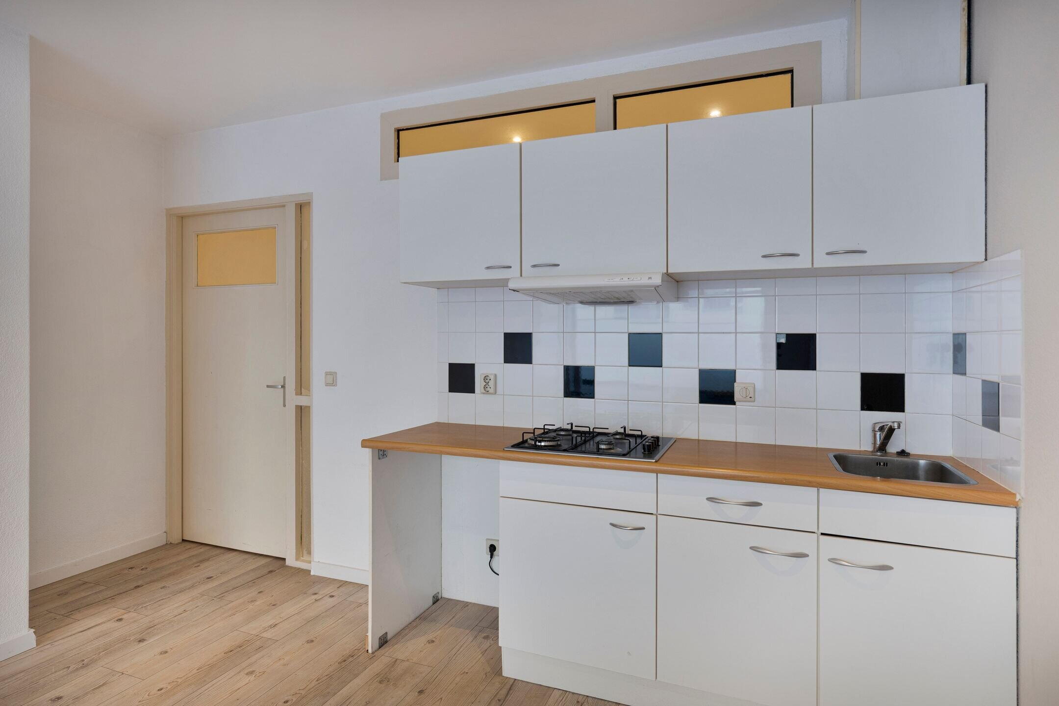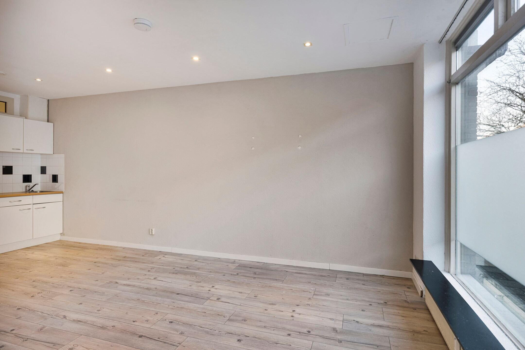 Centrale entree met eigen voordeur, lichte voorkamer/woonkamer. De hoge raampartij aan de voorzijde zorgt voor veel natuurlijk lichtinval. Keuken is voorzien van net wit aanrechtblok. Via de keuken loop je door met toegang tot de slaapkamer en van daaruit de doorloop naar de volledig betegelde badkamer met inloopdouche, wastafelmeubel en wasmachineaansluiting.