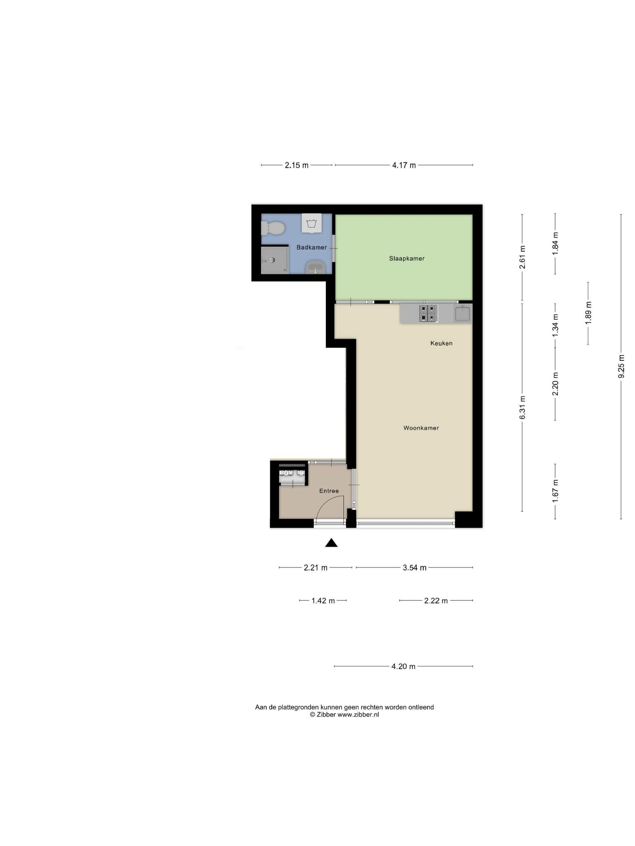 - 6 m² (2,00 meter diep en 3,00 meter breed)