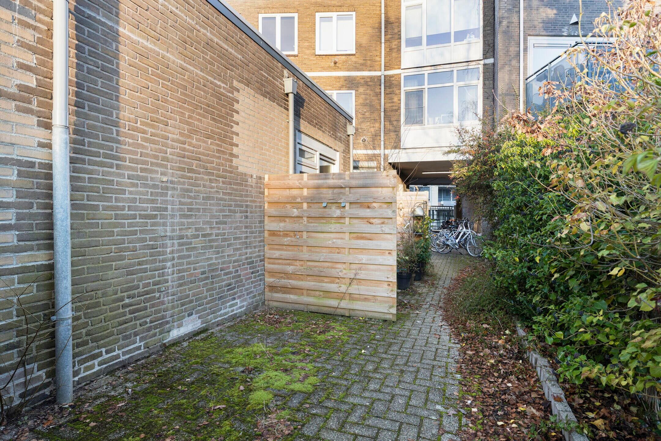 Het terras is aan de achterzijde gelegen. De achtertuin heeft een achterom met recht van overpad via het naast gelegen pad. En daar is ook de toegang tot de afgesloten berging.
